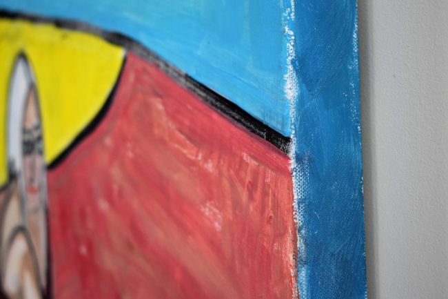 La toile est agrafée à l´arrière du châssis, ainsi les côtés peuvent être intégrés dans la création.